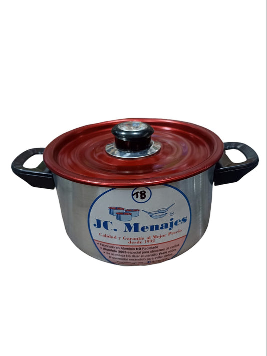 Olla de acero inoxidable 18 cm con asas rojas con tapa de vidrio marca Valeska