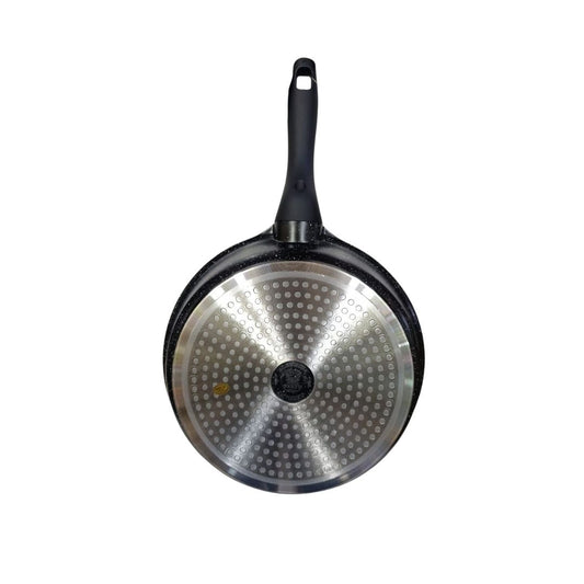Sartén de roca volcánica negra con tapa de vidrio marca Valeska