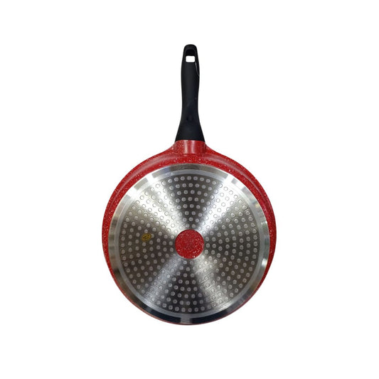 Sartén de roca volcánica roja con tapa de vidrio marca Valeska