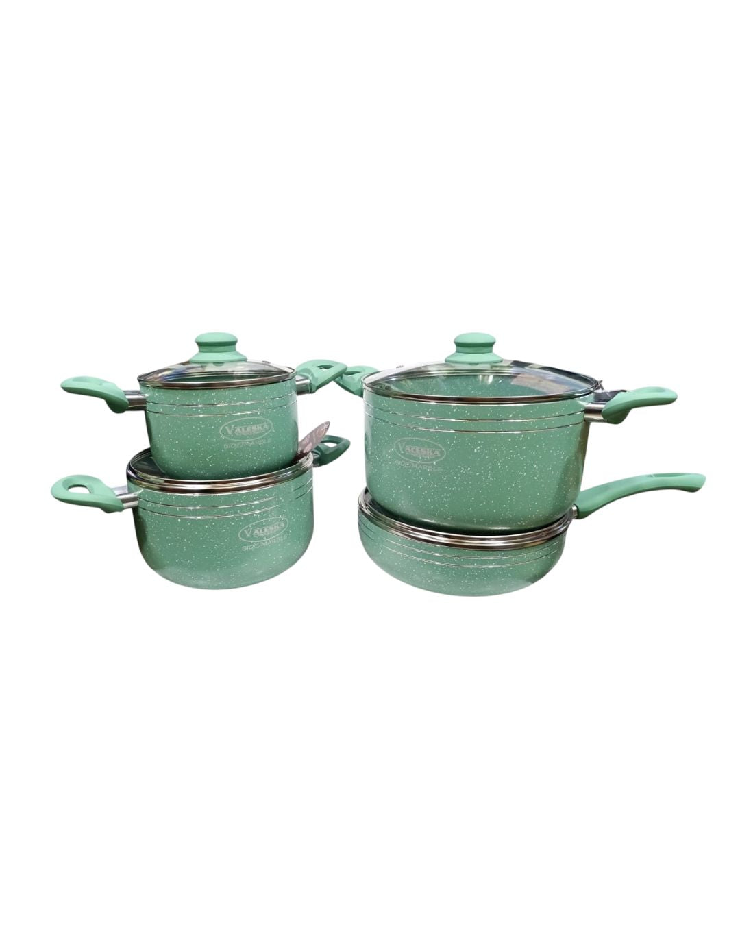 Juego de ollas de roca volcánica verde x 8 piezas marca Valeska