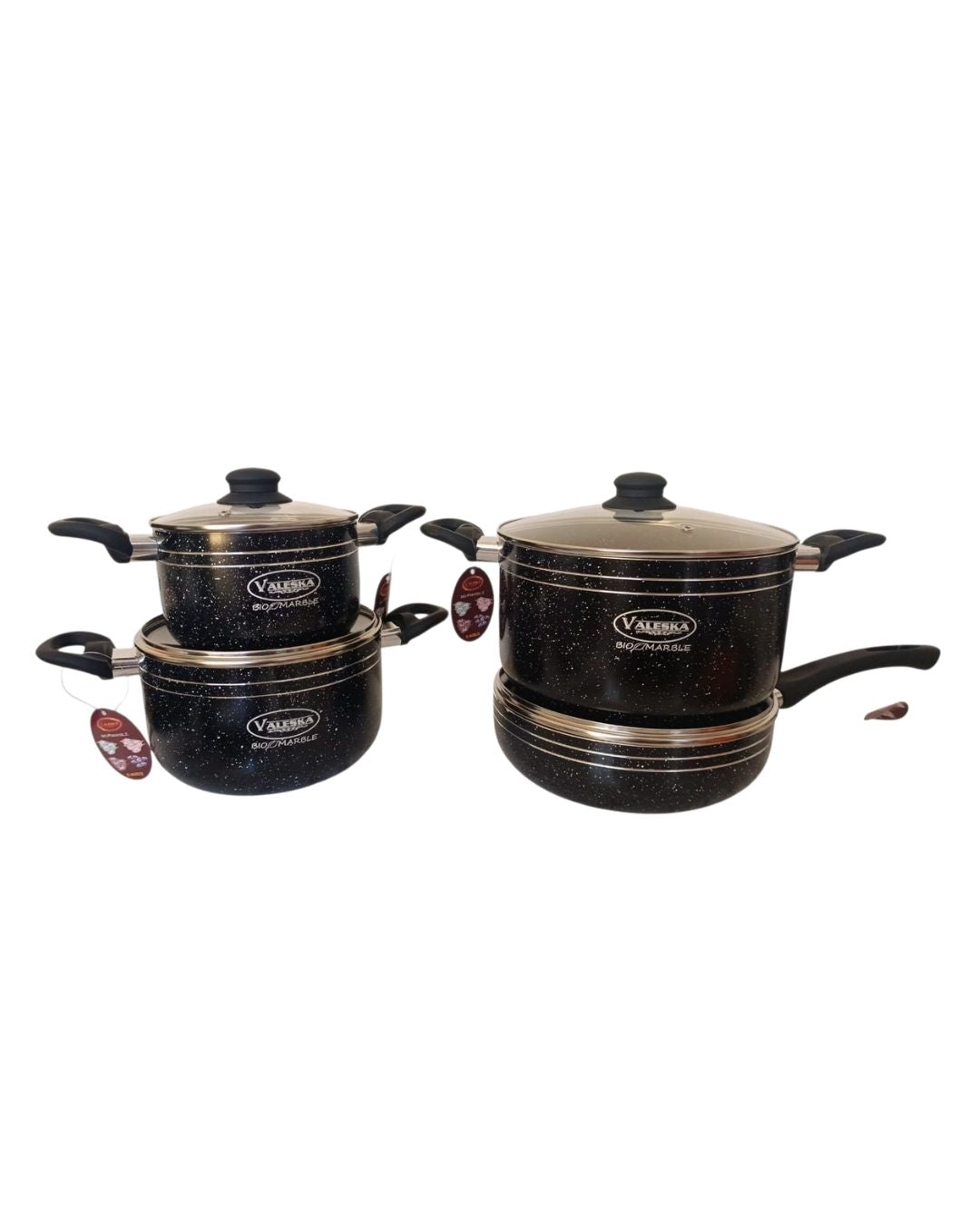 Juego de ollas de roca volcánica negra x 8 piezas marca Valeska